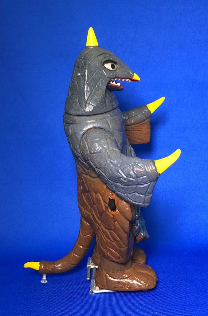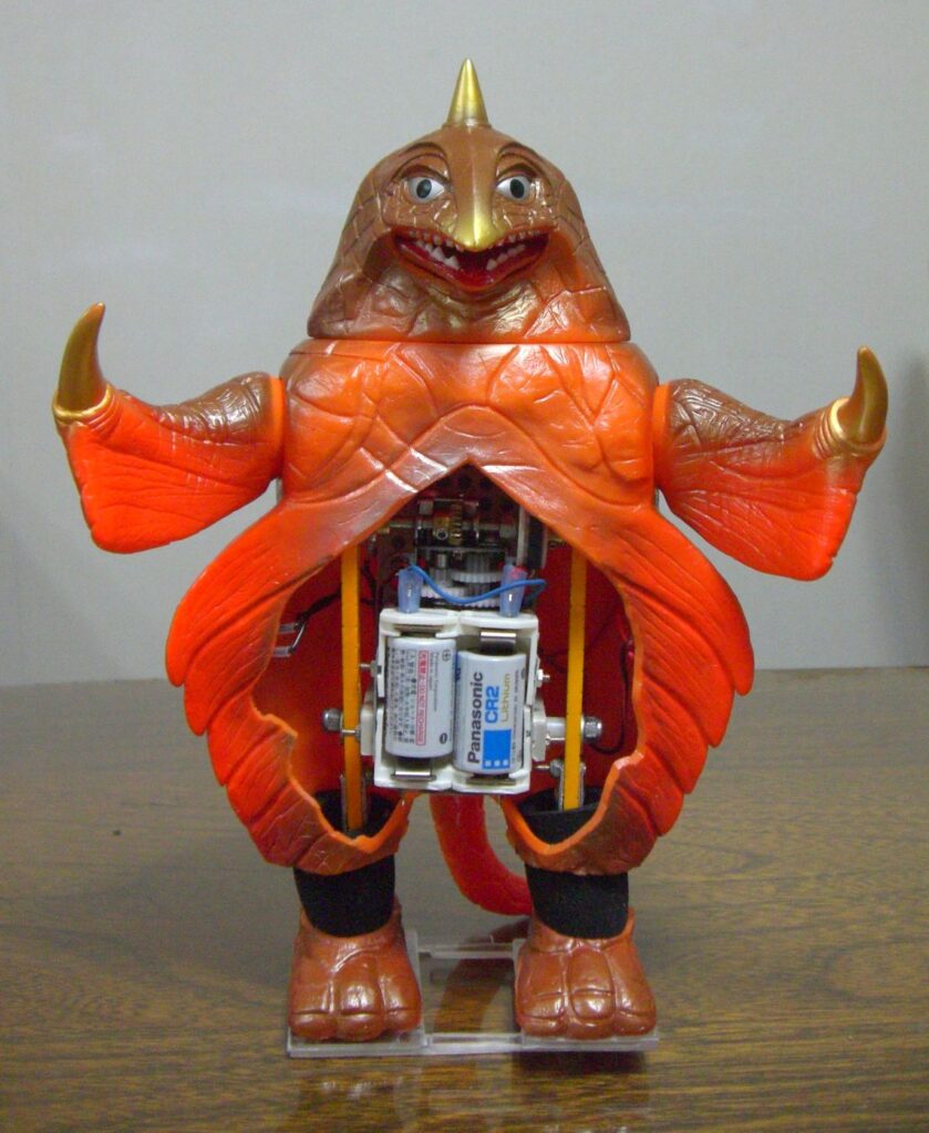エクスプラス(X PLUS)製のソフビを使用しました。非常にリアルなソフビなので、外観を損なわずに歩行させるため、ぴょんぴょん飛んで移動する方式を採用しました。日本ホビーのスーパースプリングシリーズ「キジラ」、マルショウのノシノシウルトラマン怪獣シリーズが中国に流れたと考えられる中國福萬(福建)玩具有限公司(FUMAN)の「ピグモン」等のプラモデルを参考に、バネを使用したジャンプ機構を構築しました。